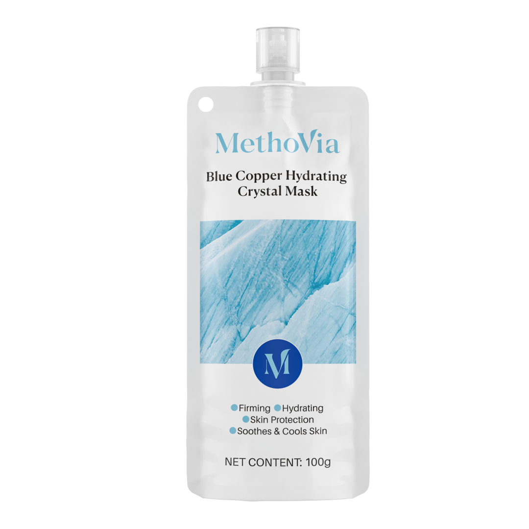 MethoVia™ Blue Copper Hydrating Crystal Mask is a rinse-off gel is formulated with copper tripeptide-1 and multi-molecular hyaluronic acid complex to help firm the skin, deeply hydrate, and improve skin’s elasticity appearance. Infused with β-glucan,  SH-Polypeptide-123, and polyglutamic acid to support the skin barrier, soothe irritation, and boost radiance for a visibly refreshed and plump complexion.