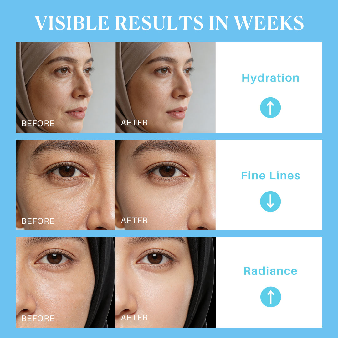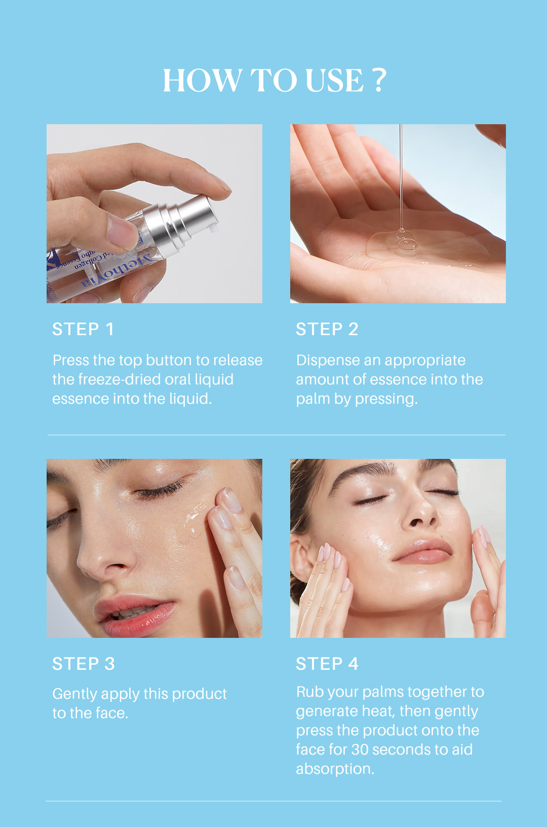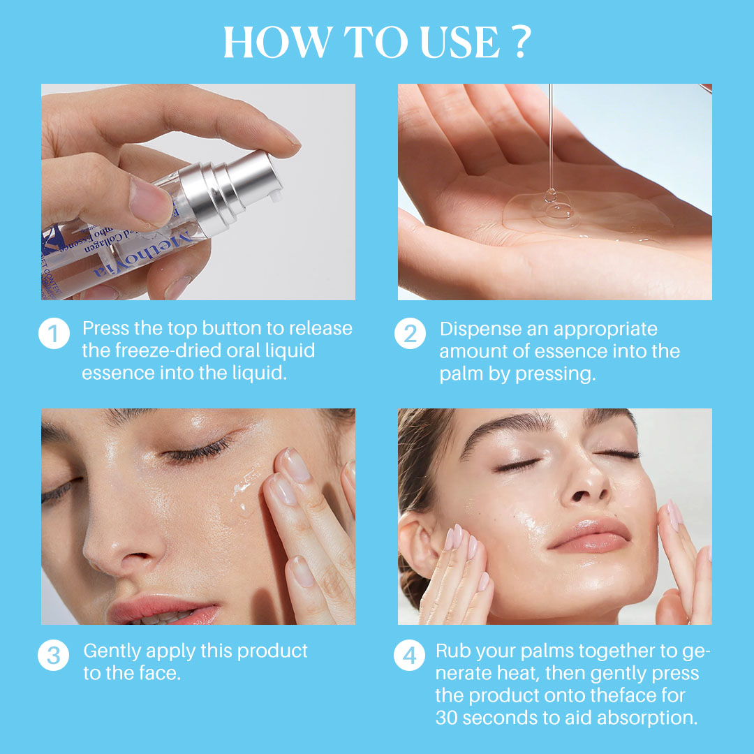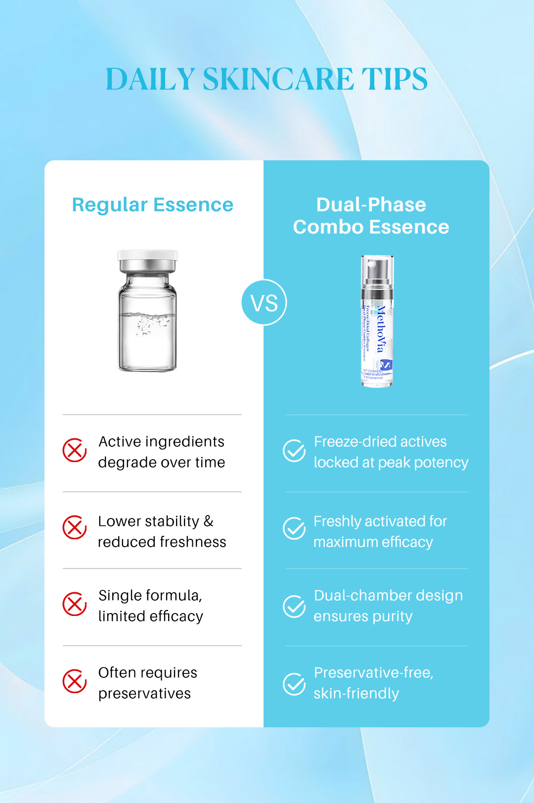 MethoVia™ Freeze-Dried Collagen Dual-Phase Combo Essence Kit includes 2 bottles, each pairing freeze-dried powder with a hydrating essence.